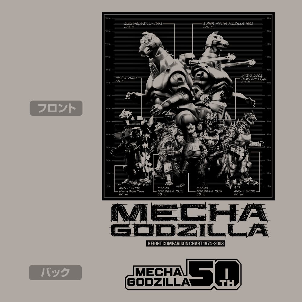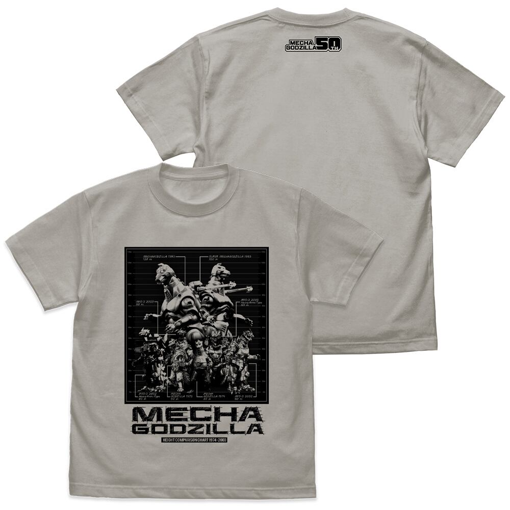 歴代メカゴジラ身長比較表 Tシャツ/LIGHT GRAY