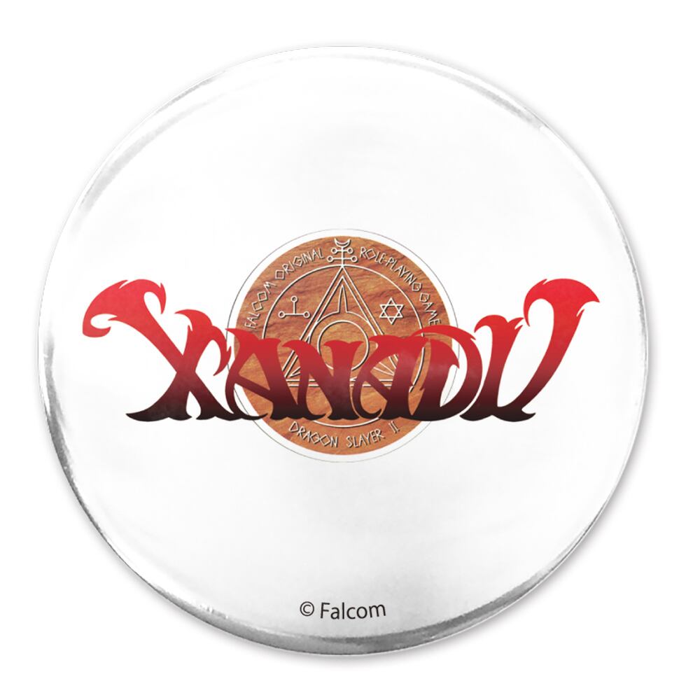 「ザナドゥ」のロゴが直径65mmの大きめ缶バッジに。