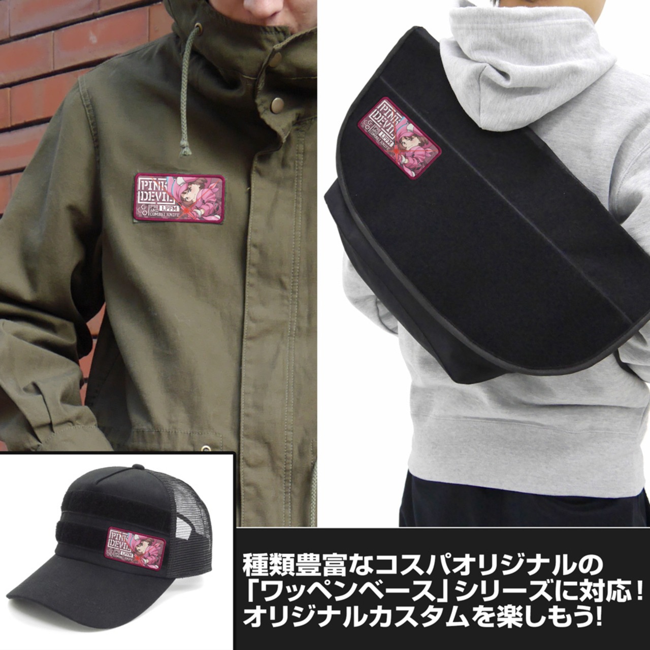 ・コスパオリジナルのワッペンベースシリーズをはじめ、面ファスナーが付いた市販のミリタリーアイテムなどにつける事が可能!