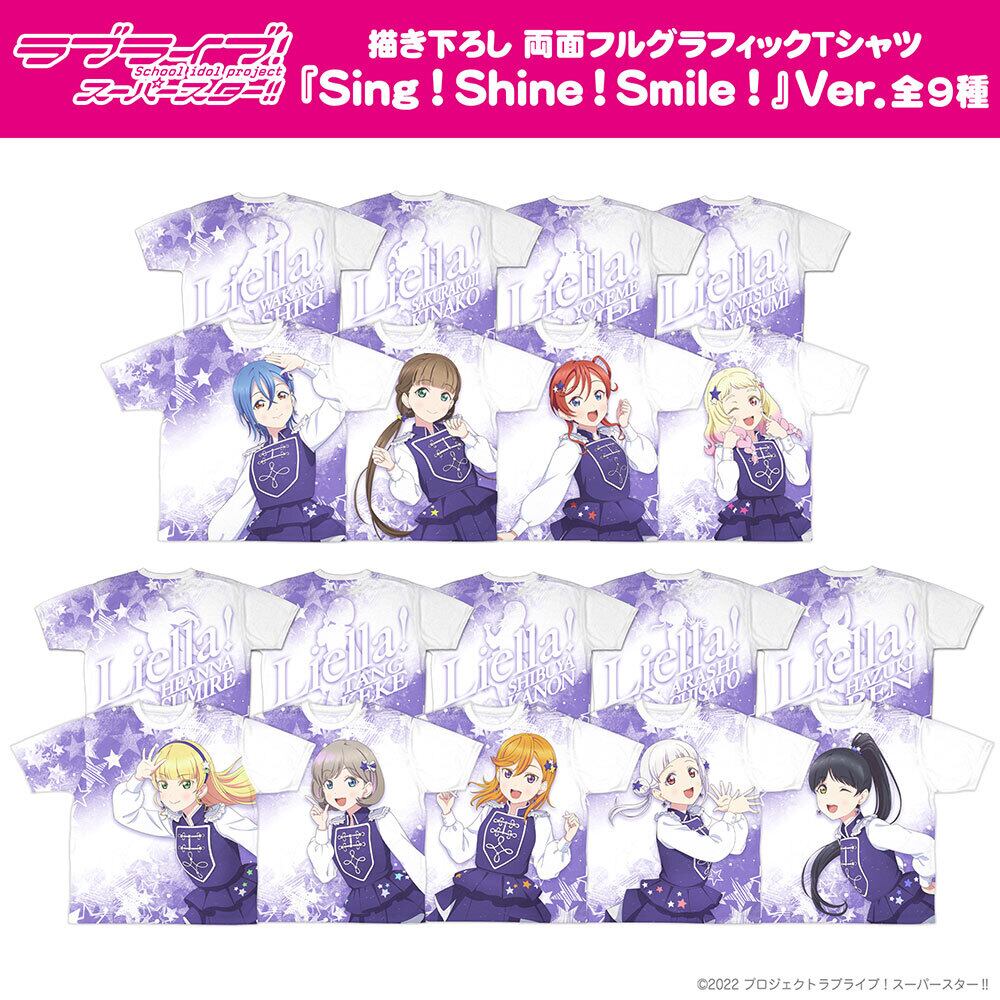 『Sing!Shine!Smile!』をイメージした落ち着きのある華やかさが特徴の両面フルグラフィックTシャツ!
