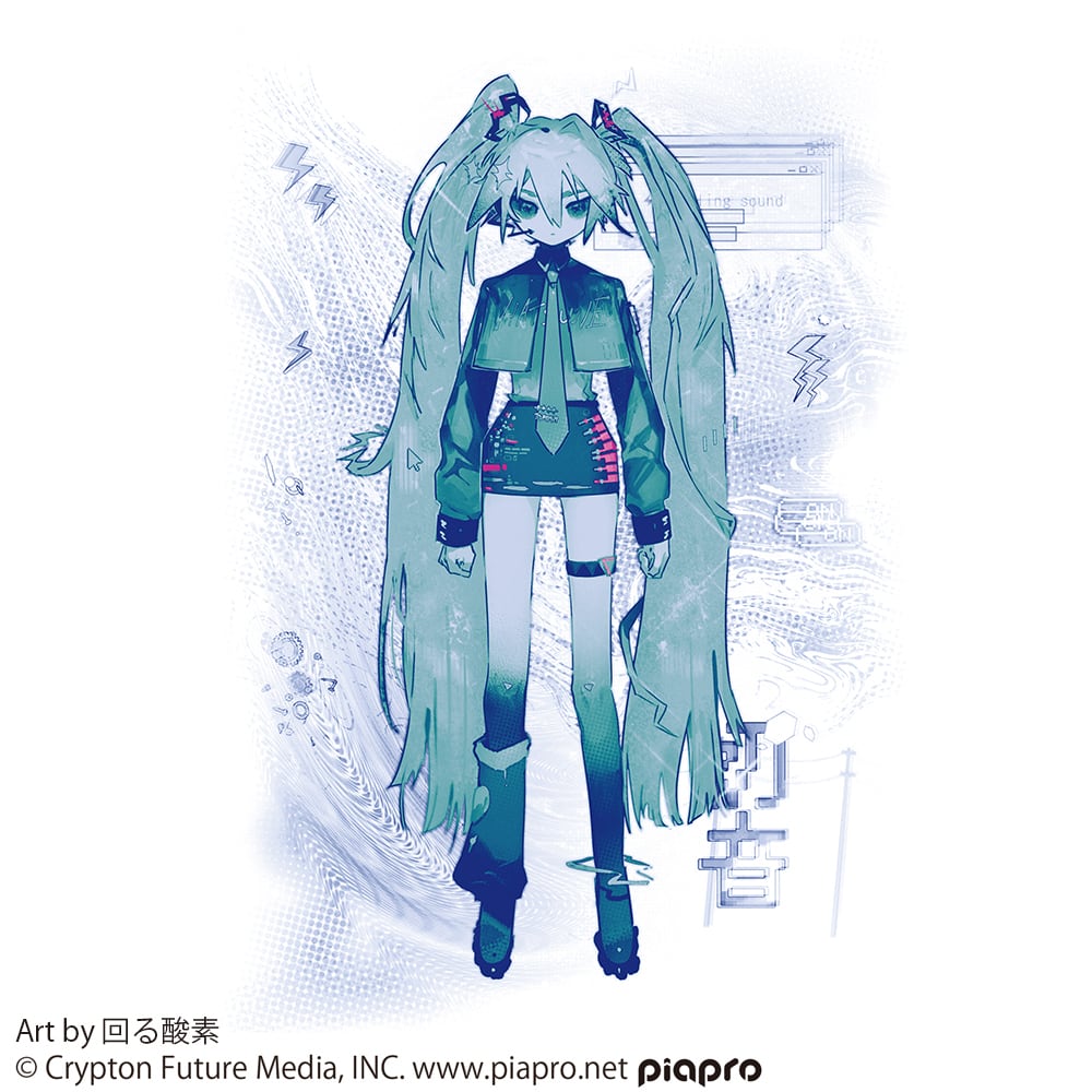 回る酸素 氏の描く独特な世界観のミクをプリントした一枚
