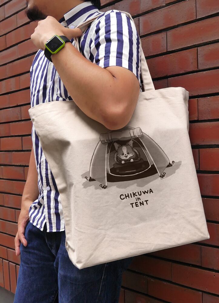 かわいくない値段のテントで休むかわいいちくわのトートバック