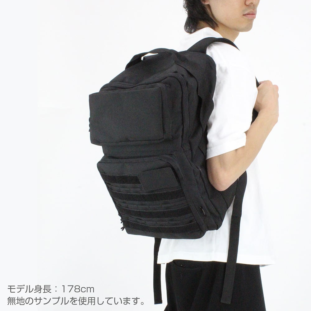 ・面ファスナーつきのモールシステムと専用テープを搭載。付属品や脱着式ワッペンのほか、キーホルダー等が付けられます。