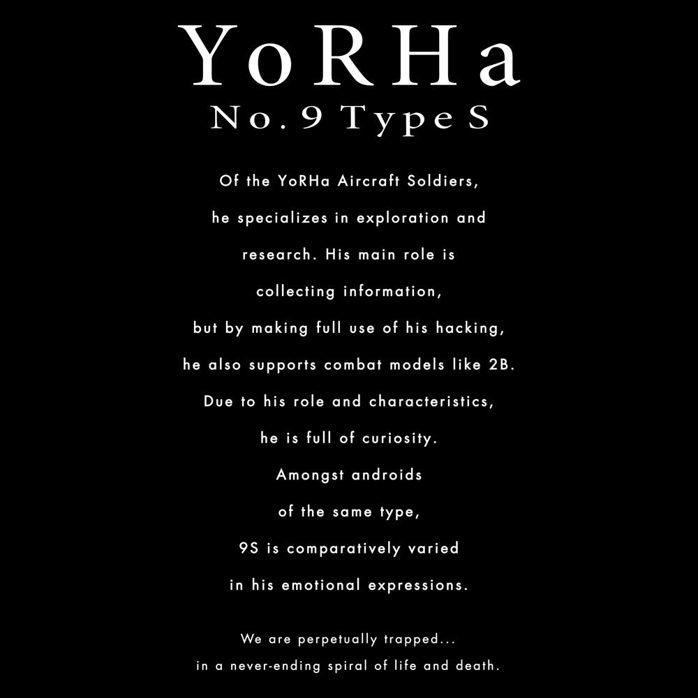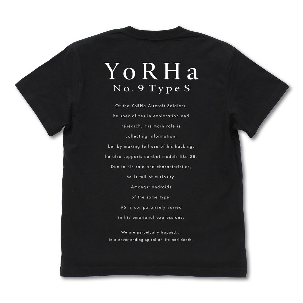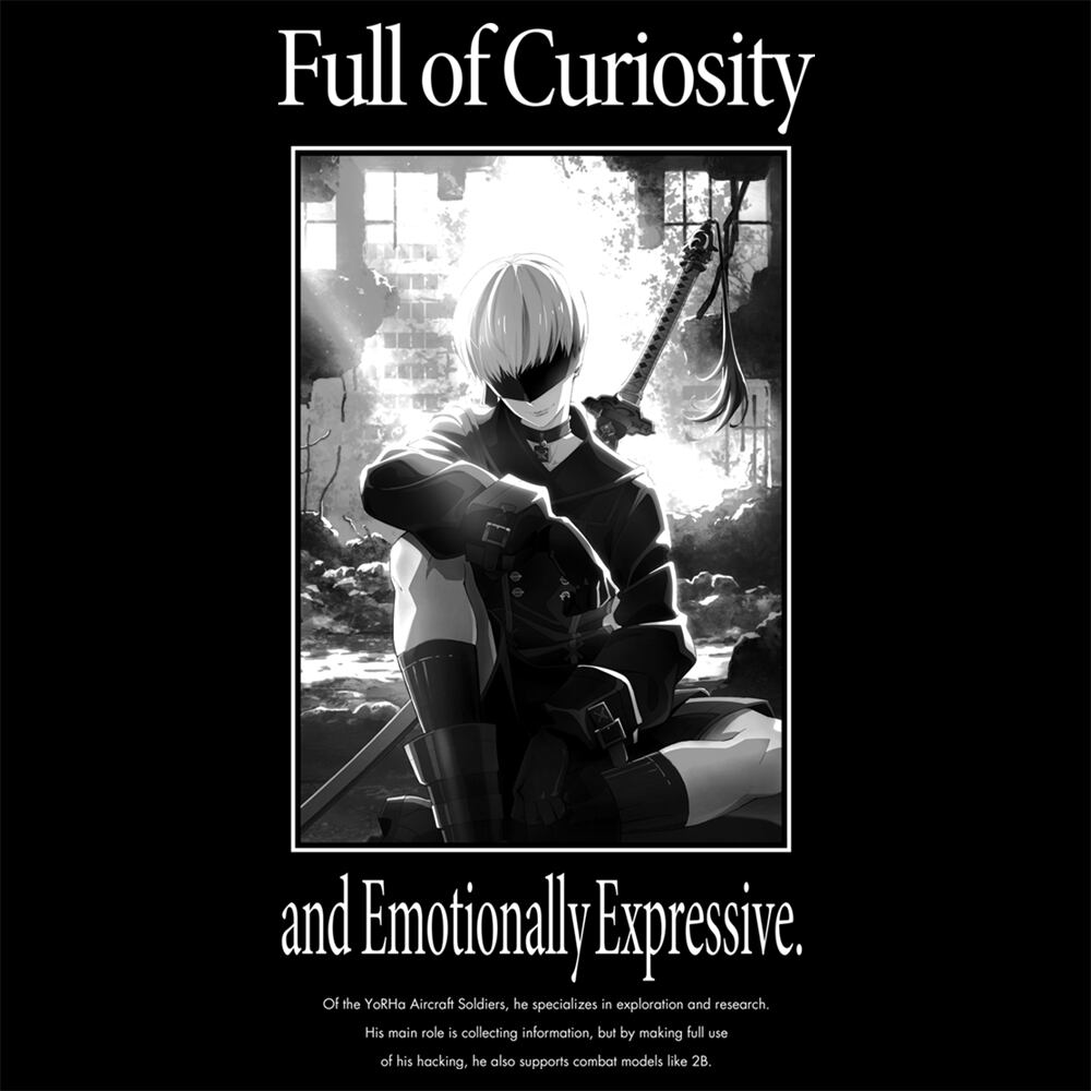 美麗な9Sのイラストが映えるモノクロ表現で統一された美しいTシャツです。