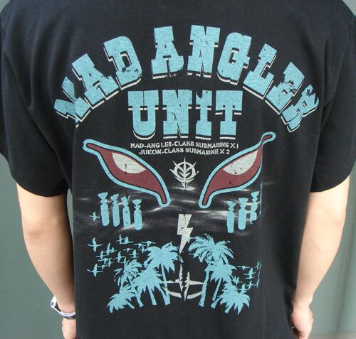 シャアが率いる“マッドアングラー隊”がジャブロー攻略の糸口を発見した功績を、彼らの母艦“潜水機動兵器母艦マッドアングラー”と共にミリタリー風にデザインしたTシャツ。