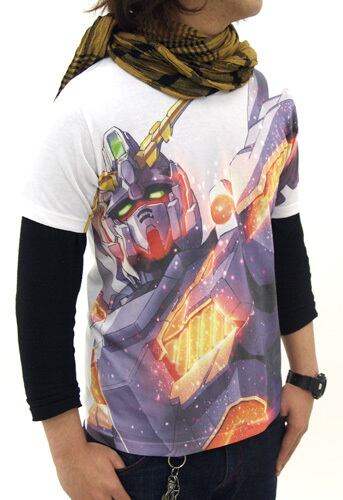 地球連邦軍の対NT用ガンダムタイプMS・RX-0“ユニコーンガンダム”を、繊細なインクジェットプリントで全面にプリントしたインパクト抜群のフルグラフィックTシャツ!