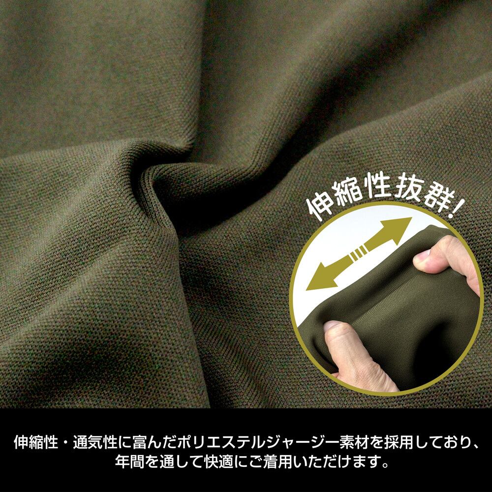 ・伸縮性・通気性に富んだポリエステルジャージー素材を採用しており、年間を通して快適にご着用いただけます。