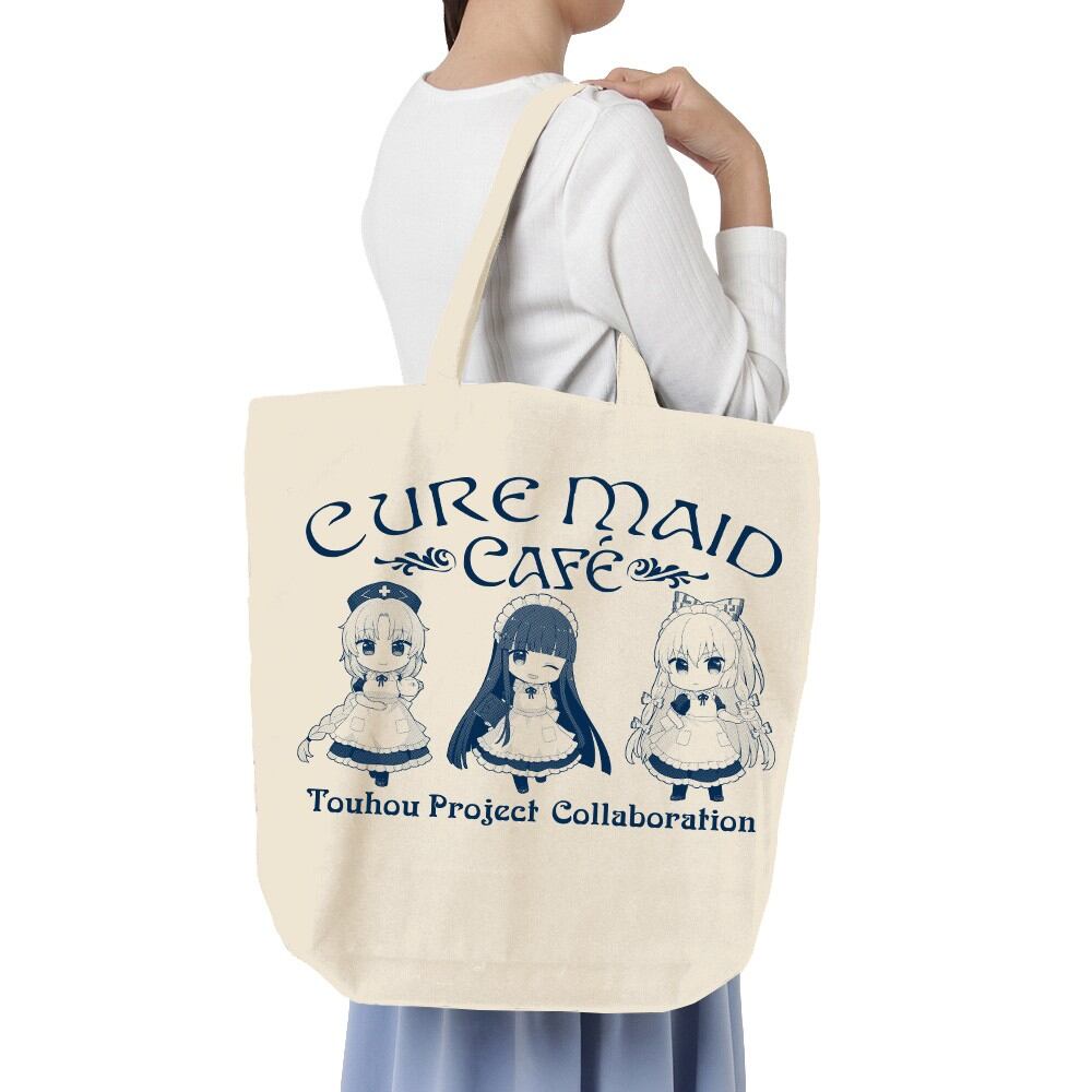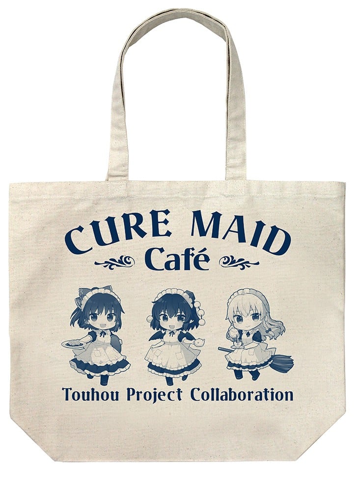 キュアメイドカフェ制服姿の文・霊夢・魔理沙をデザインしたキュアメイドカフェコラボの大容量トートバッグ