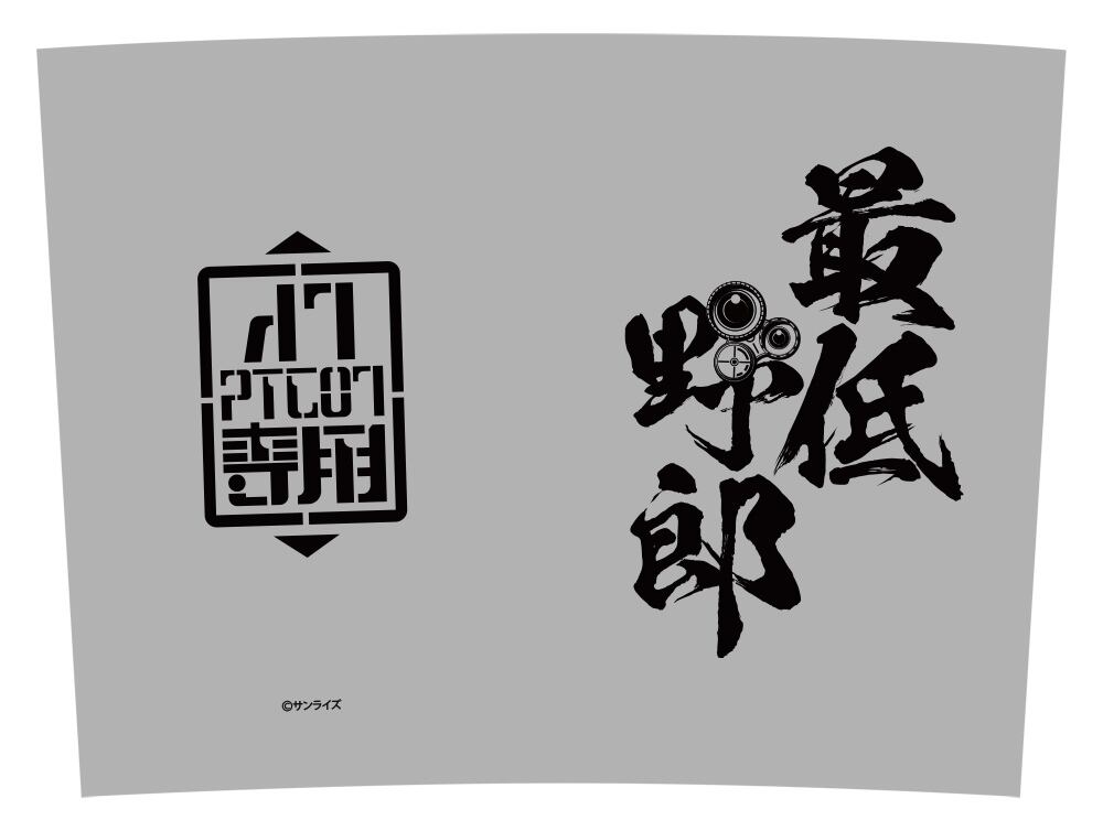 ・「最低野郎」の文字とターレットレンズを組み合わせたデザイン。