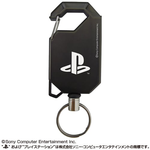 鍵などを腰やカバンに付けたままで使える“プレイステーションファミリーマーク”がプリントされた、コスパオリジナル形状の金属製リールキーホルダー。
