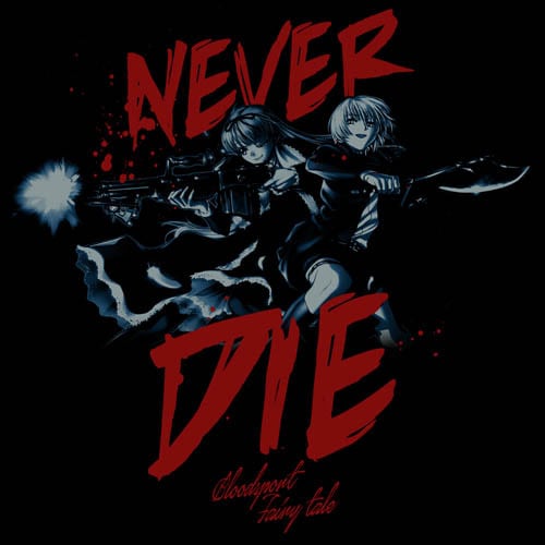 NEVER DIE(永遠)の文字とヘンゼル&グレーテルがデザインされたTシャツ