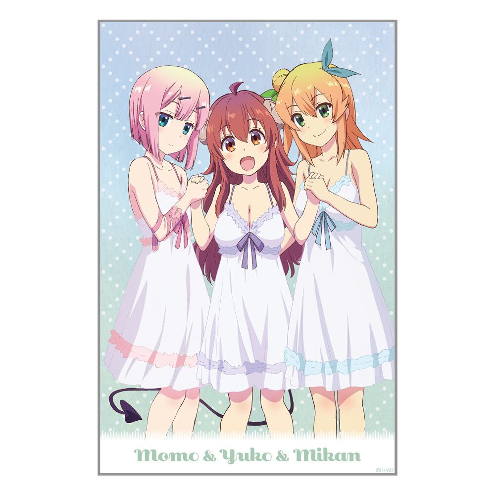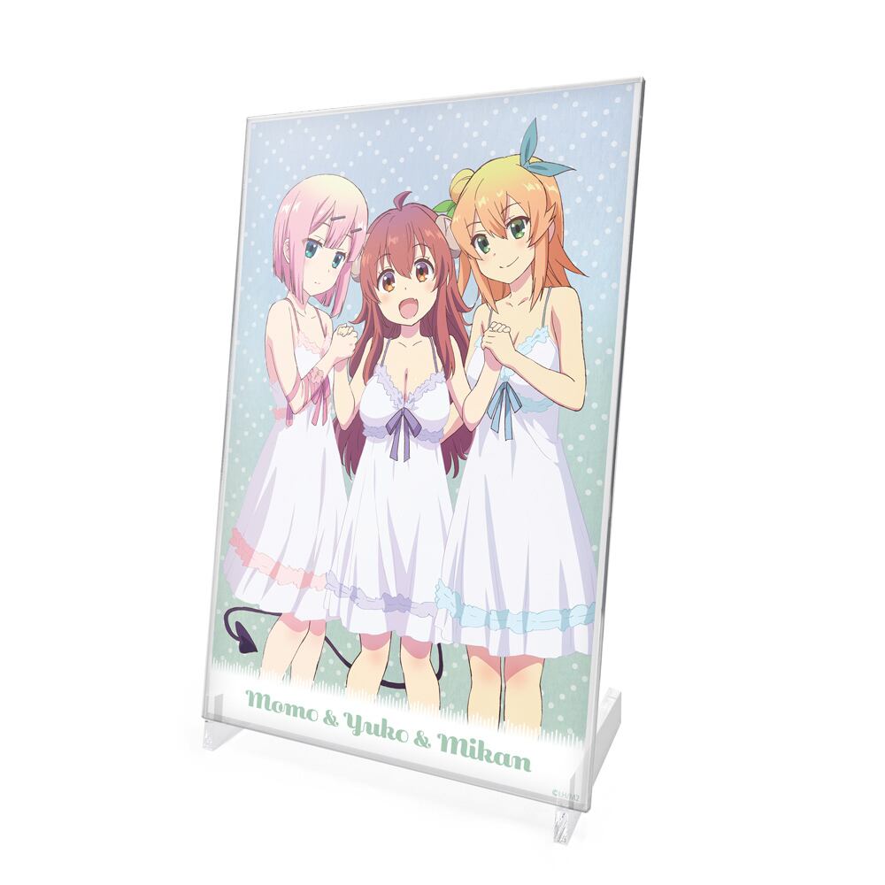 ・優子・桃・ミカンの三人を透明感のある美しいアクリルアートでお楽しみ頂けます。