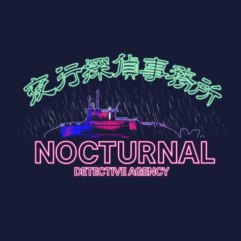 夜行探偵事務所とカナイ区のイメージが詰まったネオンサイン風のオシャレな一枚!