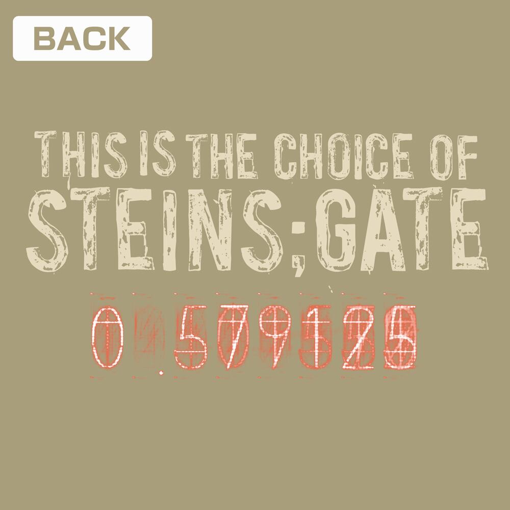 ・背面には「これがシュタインズゲートの選択だ」というテキストと、マニアックなニキシー管のプリント入り