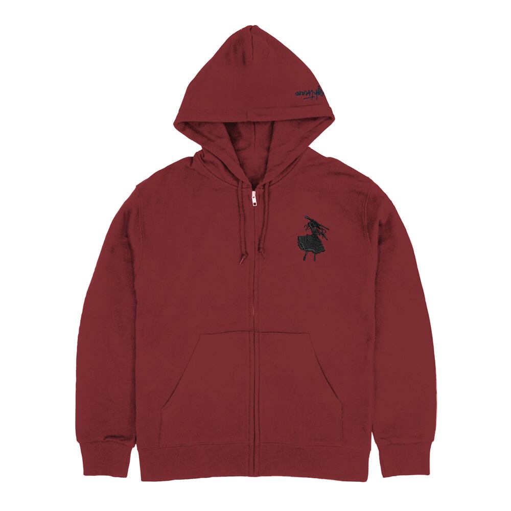 時崎狂三 シルエット刺繍ジップパーカー/BURGUNDY