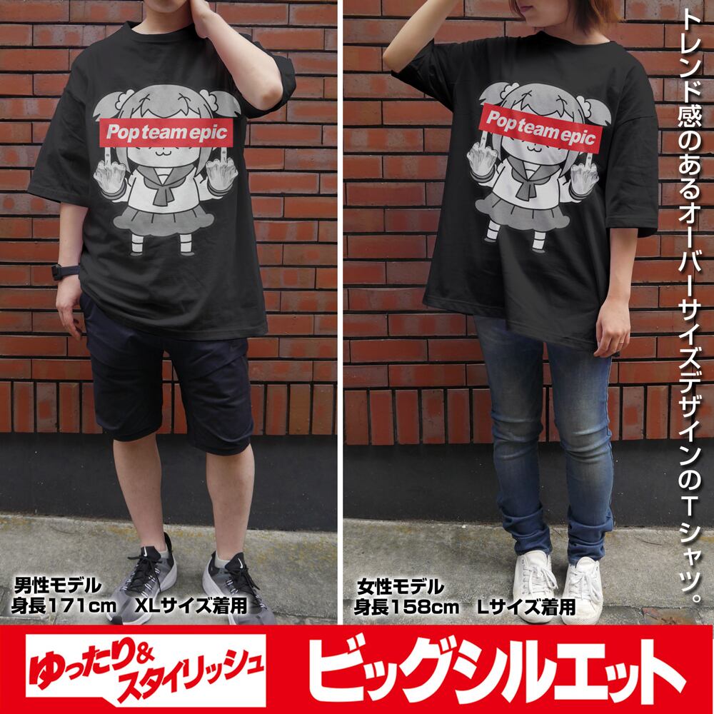 ポプテピピックの行列ができる ビッグシルエットTシャツ/BLACK