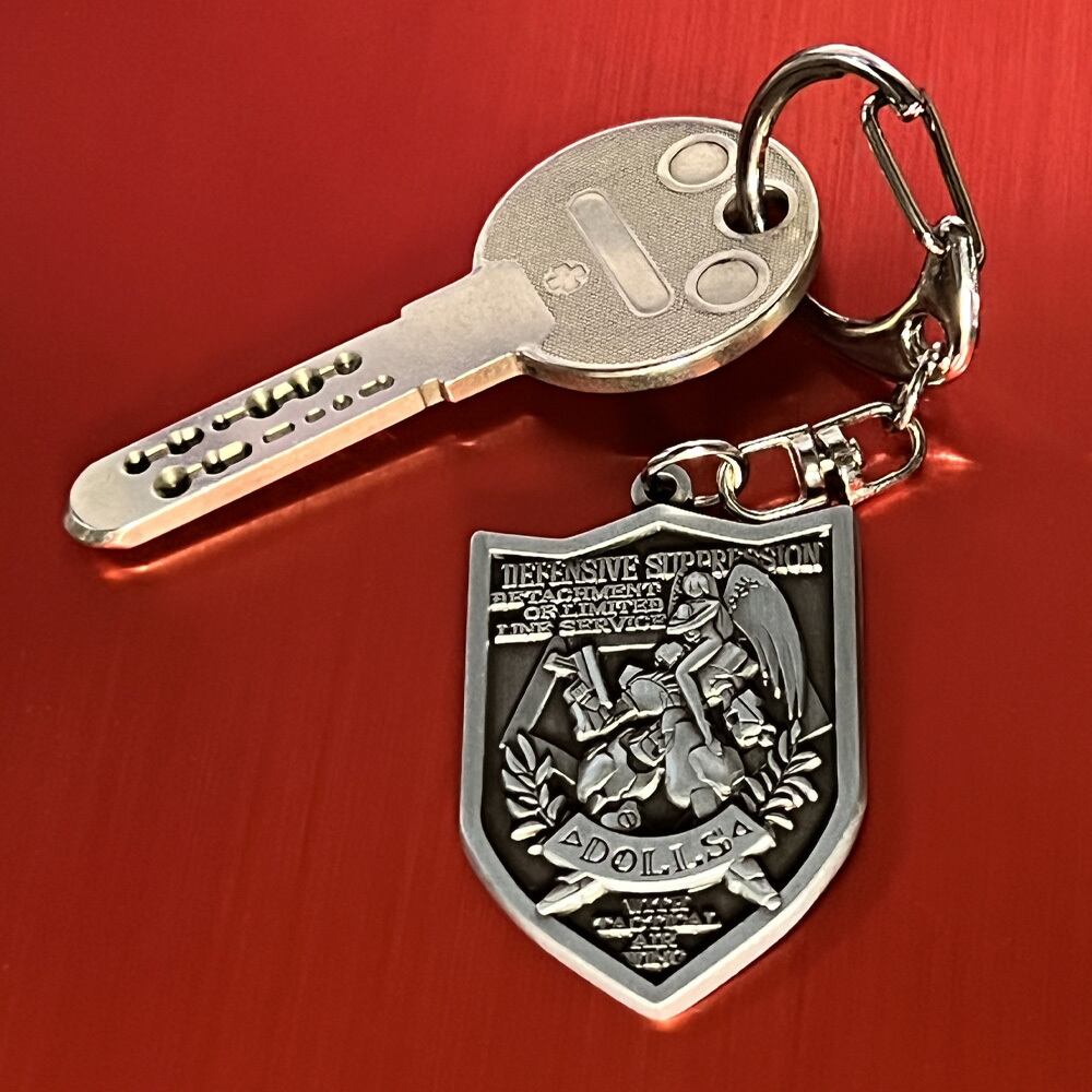 人型兵器パワーローダーで編成された第177特務大隊DoLLSのエンブレムをデザインしたメタルキーホルダー