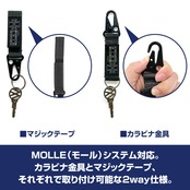 ・MOLLE(モール)システム対応。[注1]カラビナ金具とマジックテープ、それぞれで取り付け可能な2way仕様。