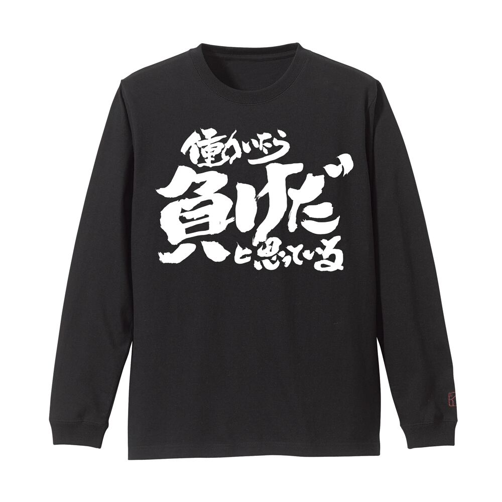 トッシーの「働いたら負けだと思っている。」袖リブロングスリーブTシャツ/BLACK