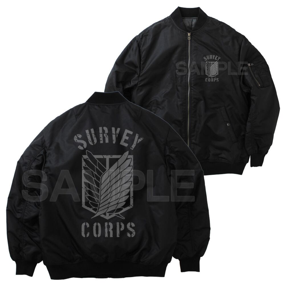 ・フライトジャケットの定番でもあるMA-1に調査兵団のエンブレムをプリント。