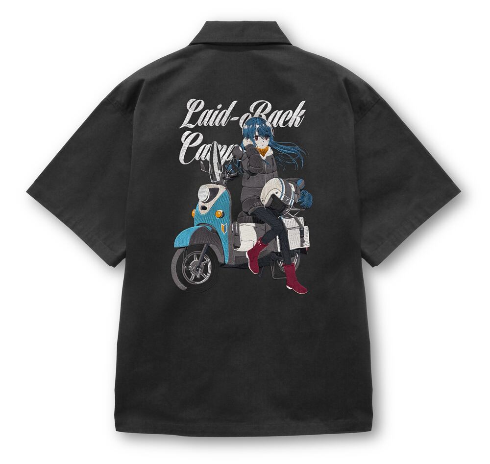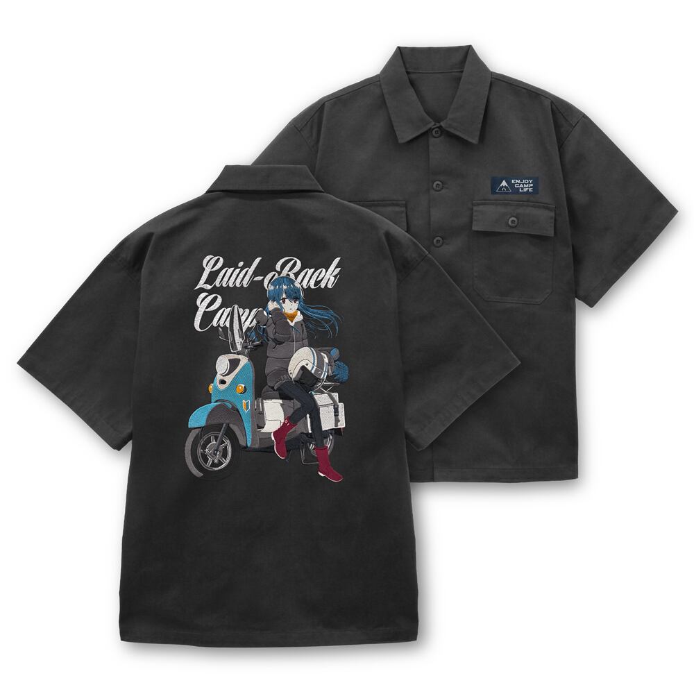 描き下ろし 志摩リン 刺繍ワークシャツ バイクでひといきVer./GRAY