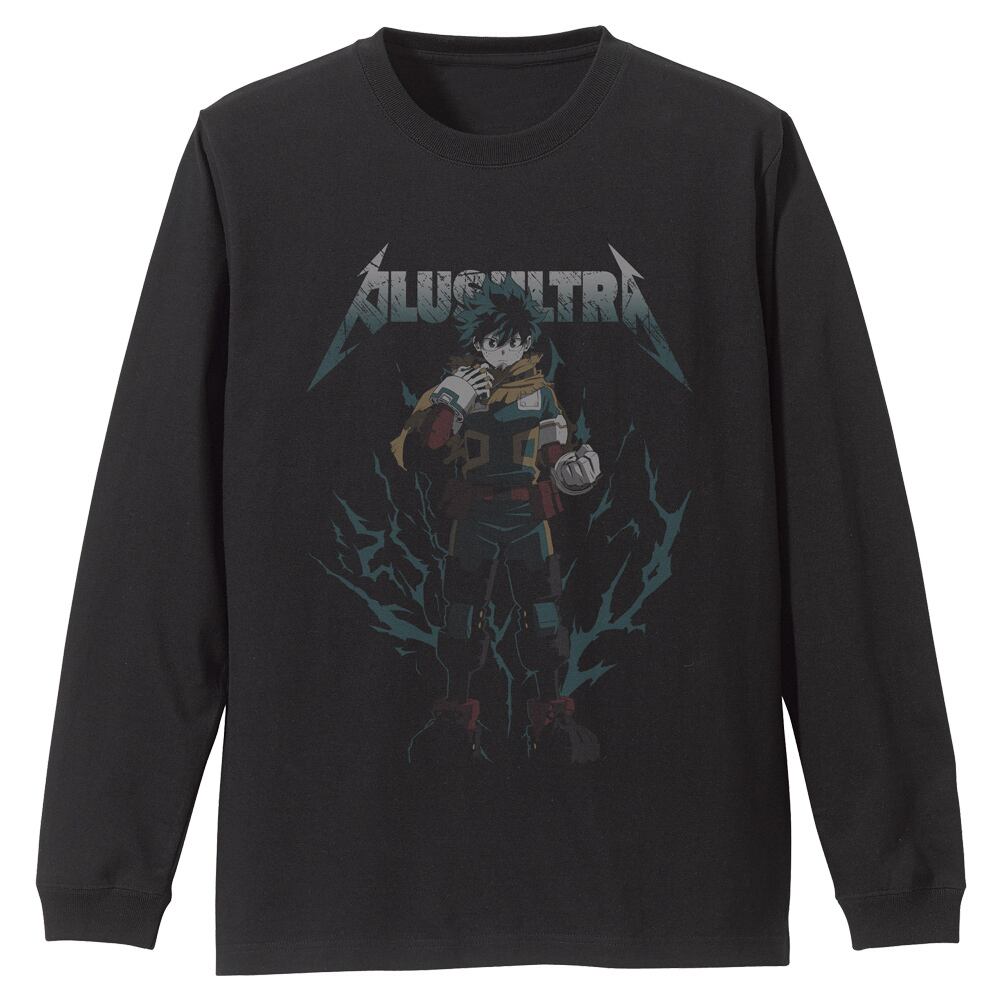 緑谷出久 袖リブロングスリーブTシャツ/BLACK