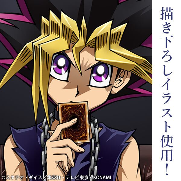 ・最強の決闘者達がここに集合。椅子の上でカードを片手に、静かに佇む武藤遊戯は新規描き下ろし!