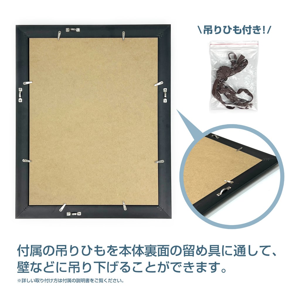 ・吊り紐が付属しています。本体裏面の留め具を使用して、壁などに吊り下げることができます。