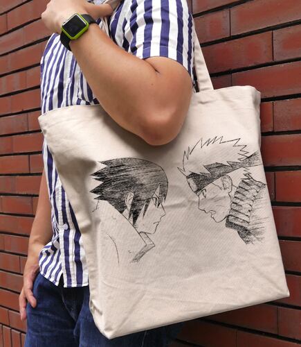 対峙する『ナルト』と『サスケ』をプリントした大容量トートバッグ