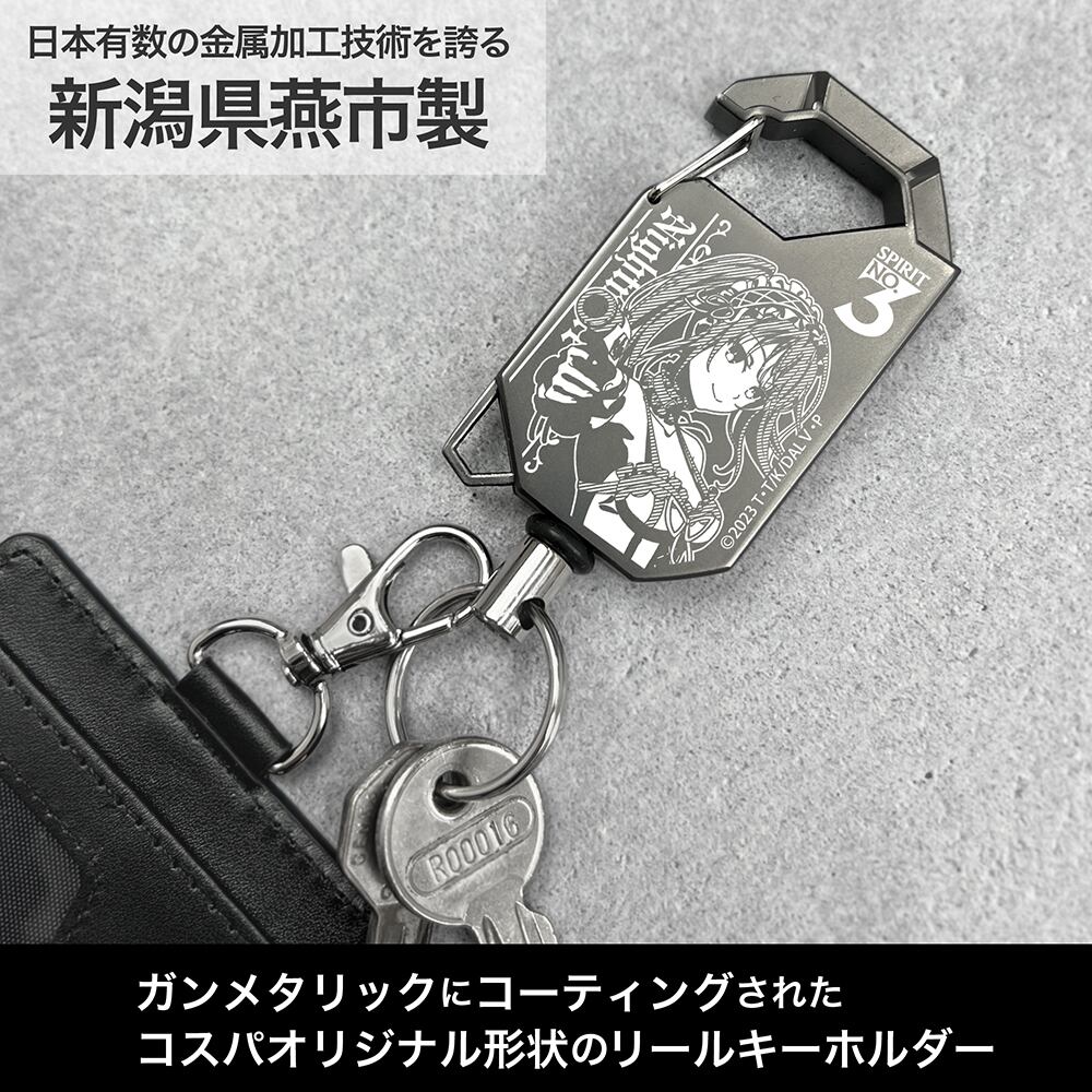 ・ガンメタリックにコーティングされたコスパオリジナル形状のリールキーホルダー