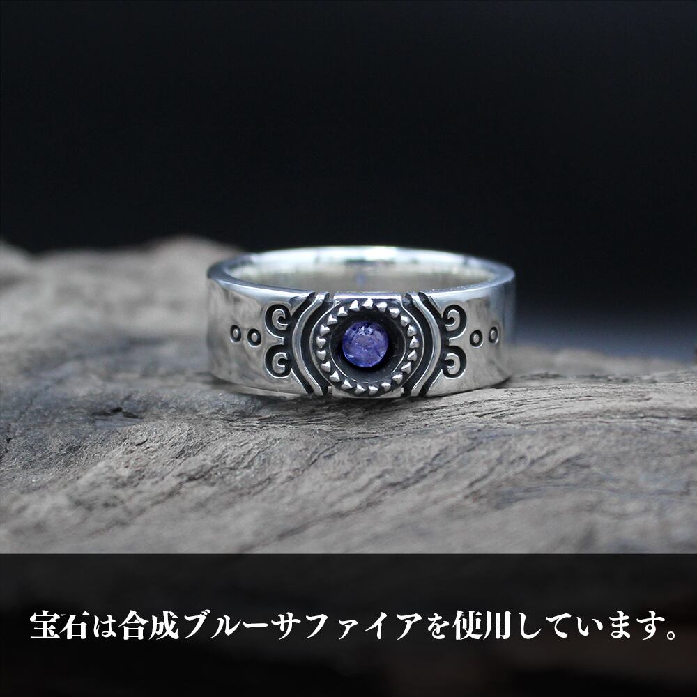 【リングサイズ】内円周:約61.8mm 幅:約6.5mm / 【素材】シルバー925製 / 【使用石】合成ブルーサファイア