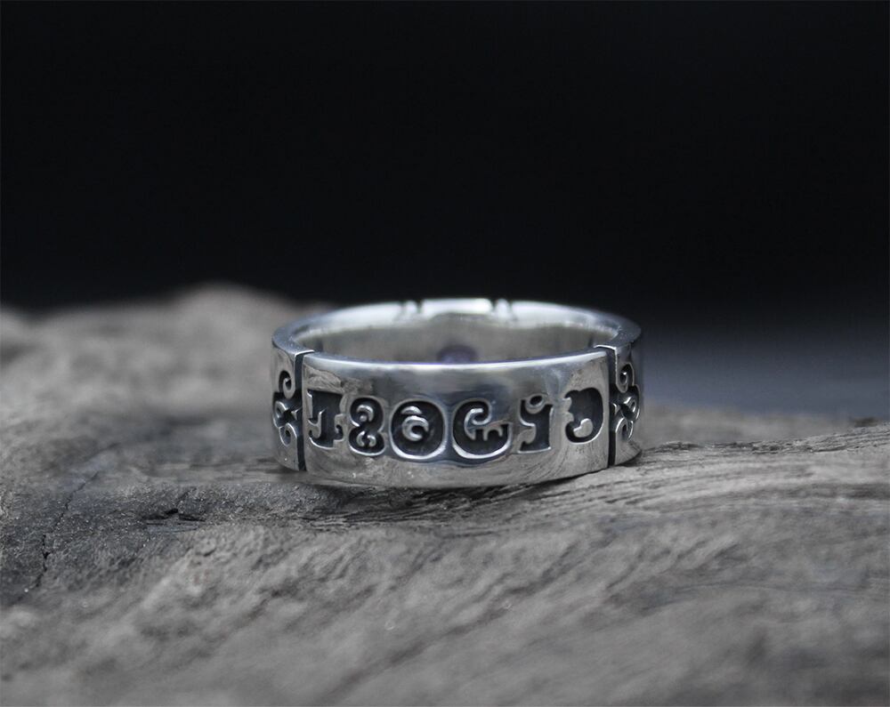 『暁美ほむら』のソウルジェムを緻密な彫刻で再現した、日本製シルバーリング。