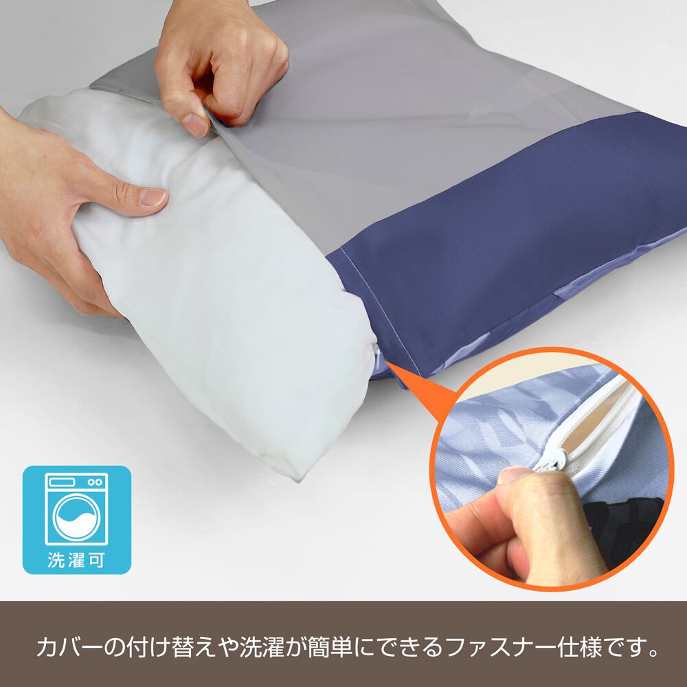 ・45×45cmのクッションカバーはファスナーつきで取替え可能、洗濯もカンタン。