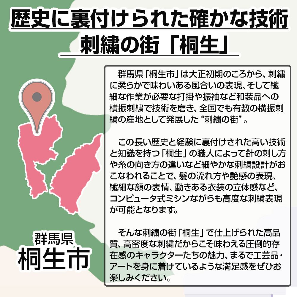 ・伝統的な刺繍の名産地群馬県「桐生市」産で高品質、高密度な仕上がり。