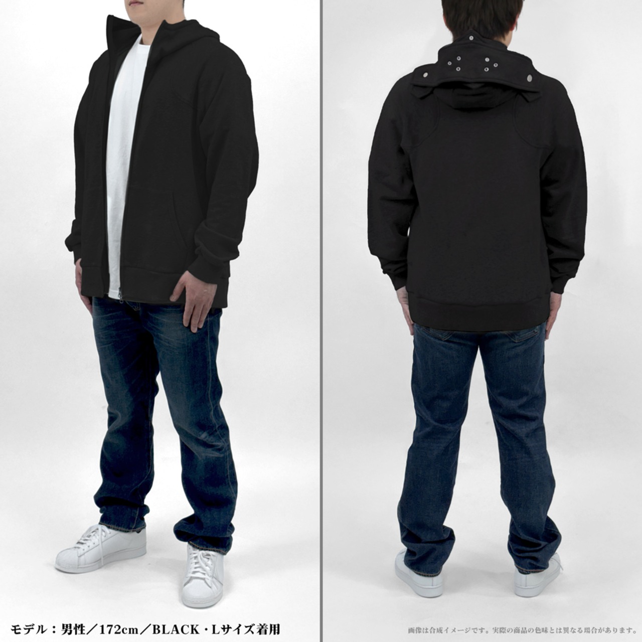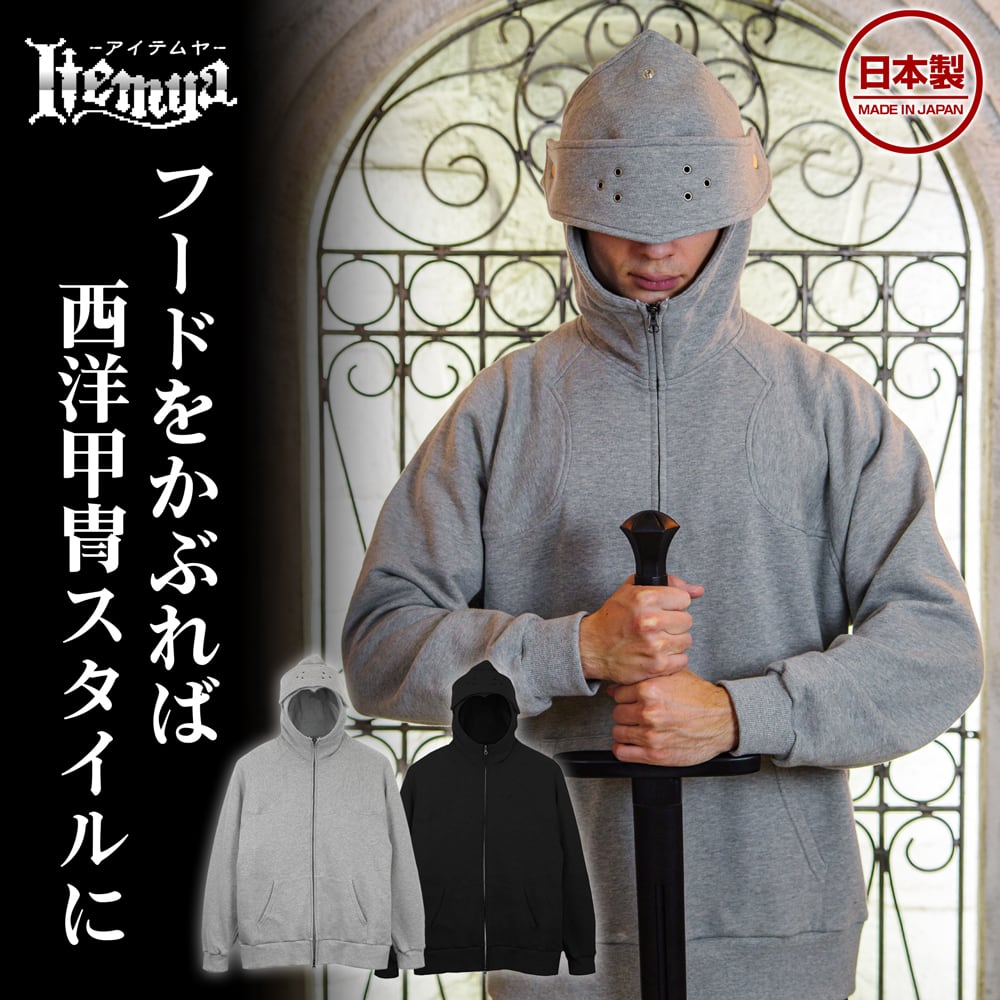 フードをかぶれば西洋甲冑スタイルに。