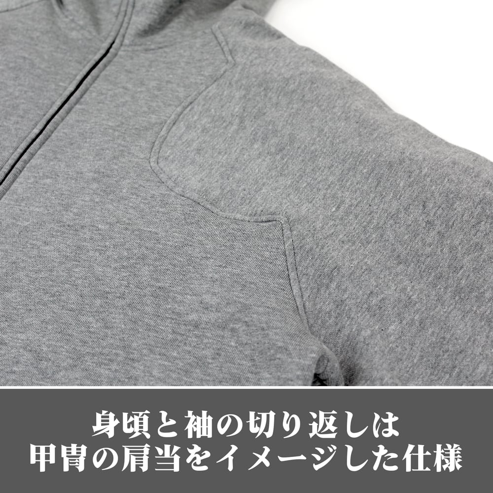 ・身頃と袖の切り返しは甲冑の肩当をイメージ。