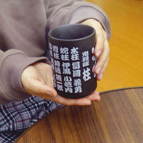 ・手作業で作られた風合いある湯のみに、『柱』の名前や『滅』の文字をプリント。