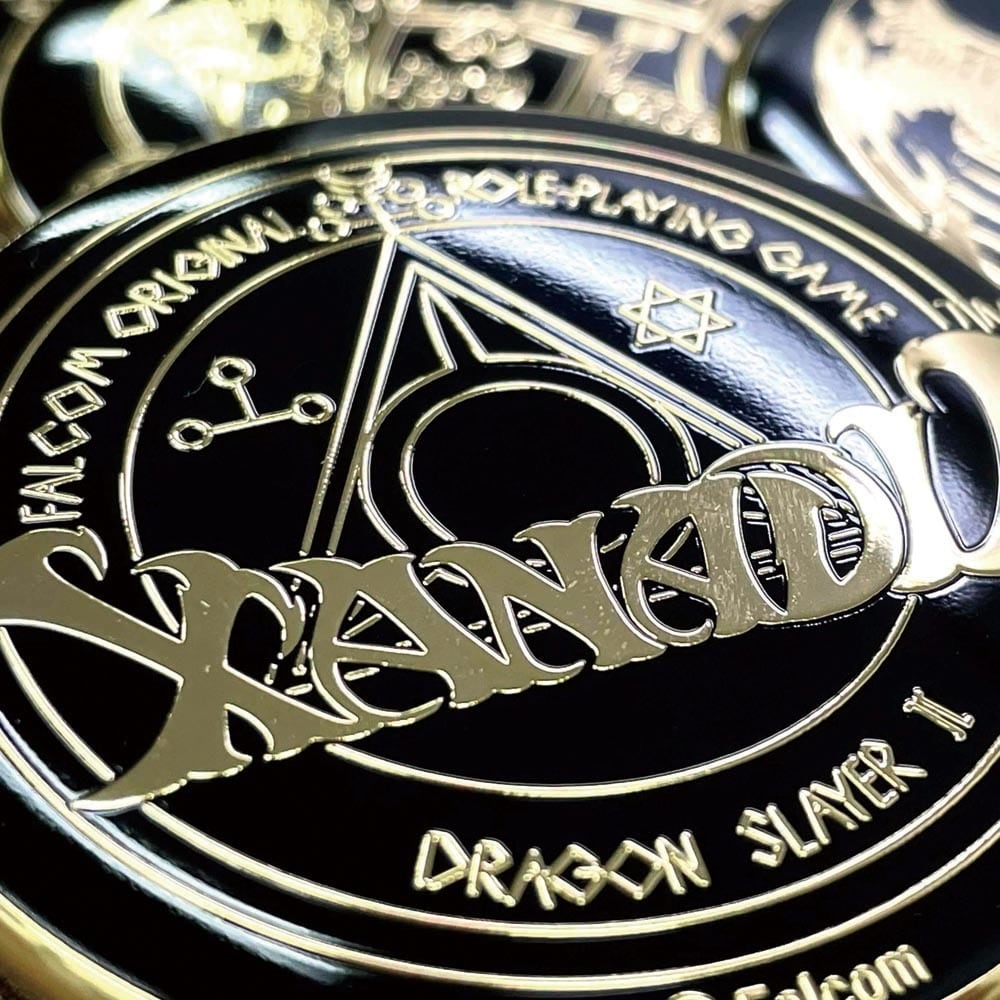 『デーモンズリング』のロゴを重厚な金属メッキで表現したハイグレードなアクセサリーバッジ