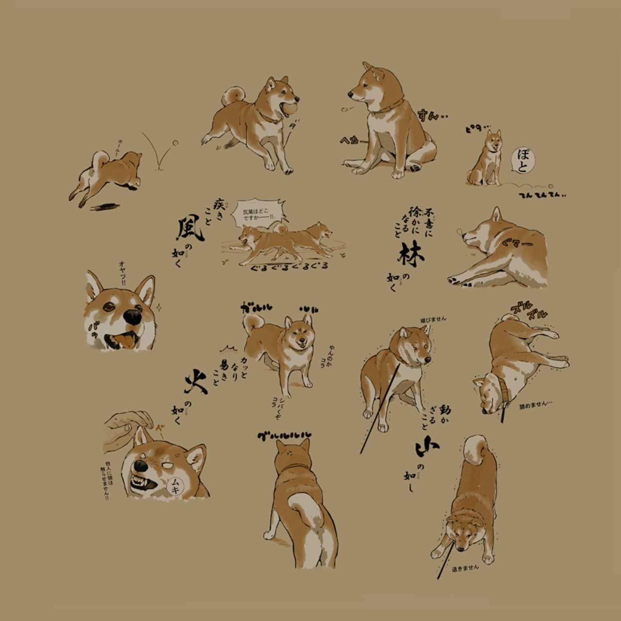 柴犬の性格を的確に表現したハルさんの風林火山Tシャツ!