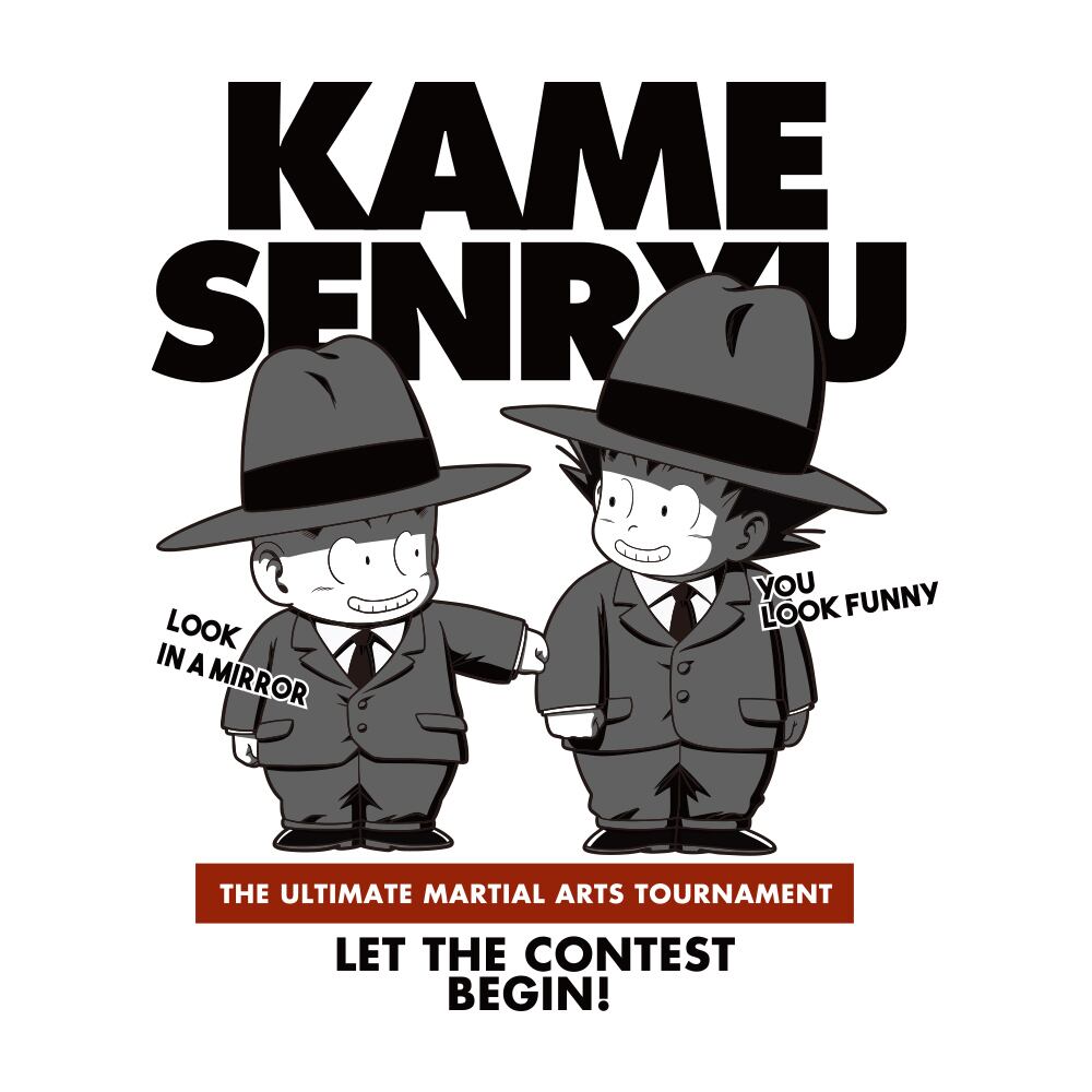 ・厳しい亀仙人の修行のもと、強くなった二人がスーツ姿で天下一武道会へ出発!ちゃかしあう幼い悟空とクリリンがかわいいデザインです!